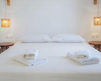 The triple rooms have a double built or iron bed, and one single bed in blue colourings.